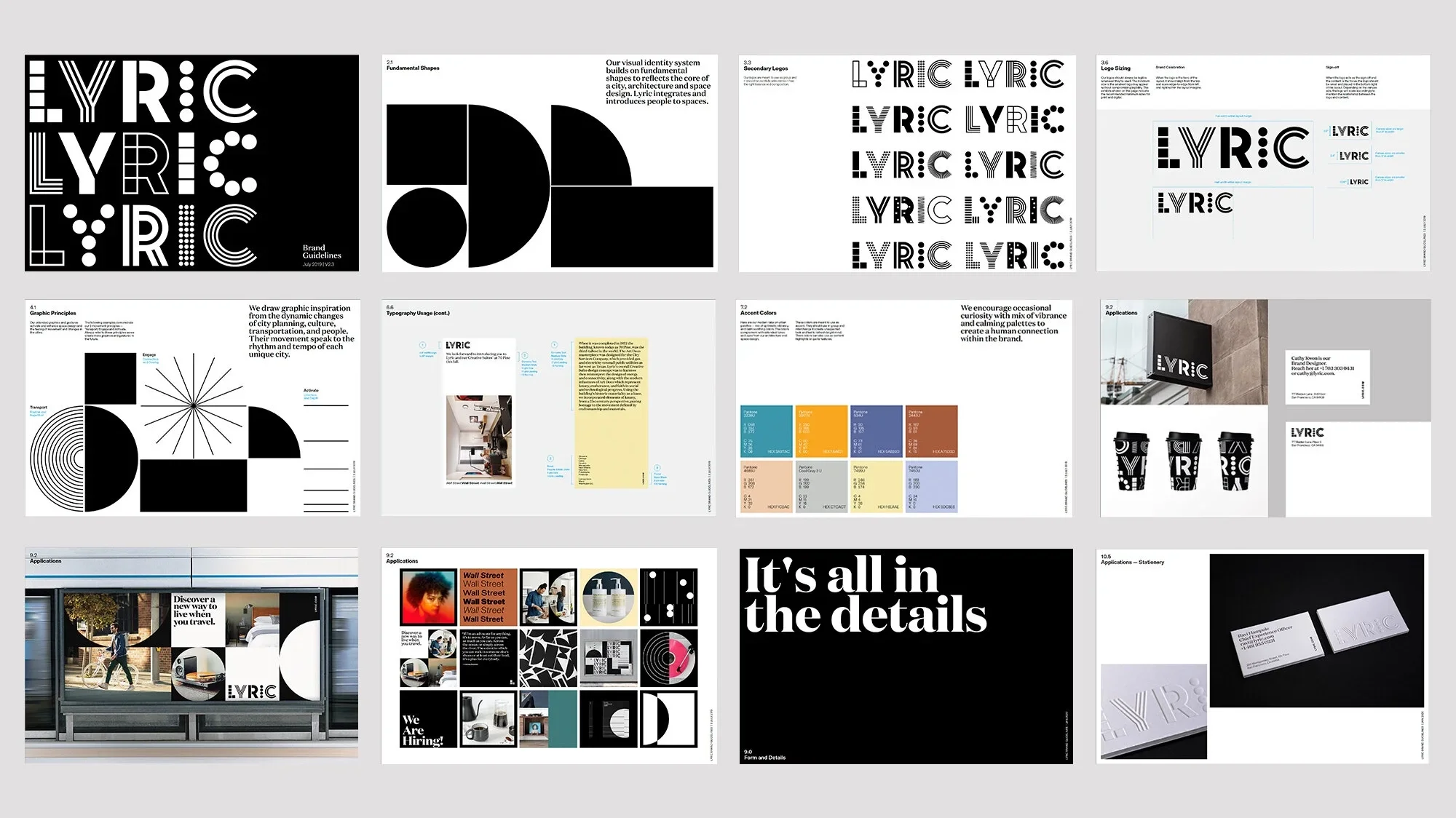 The visual identity system was designed to mirror the flexibility of the physical spaces while adapting to the character of each market. The logo uses multiple letterform combinations to form an ever-changing identity—so that each property has its own unique Lyric logo.