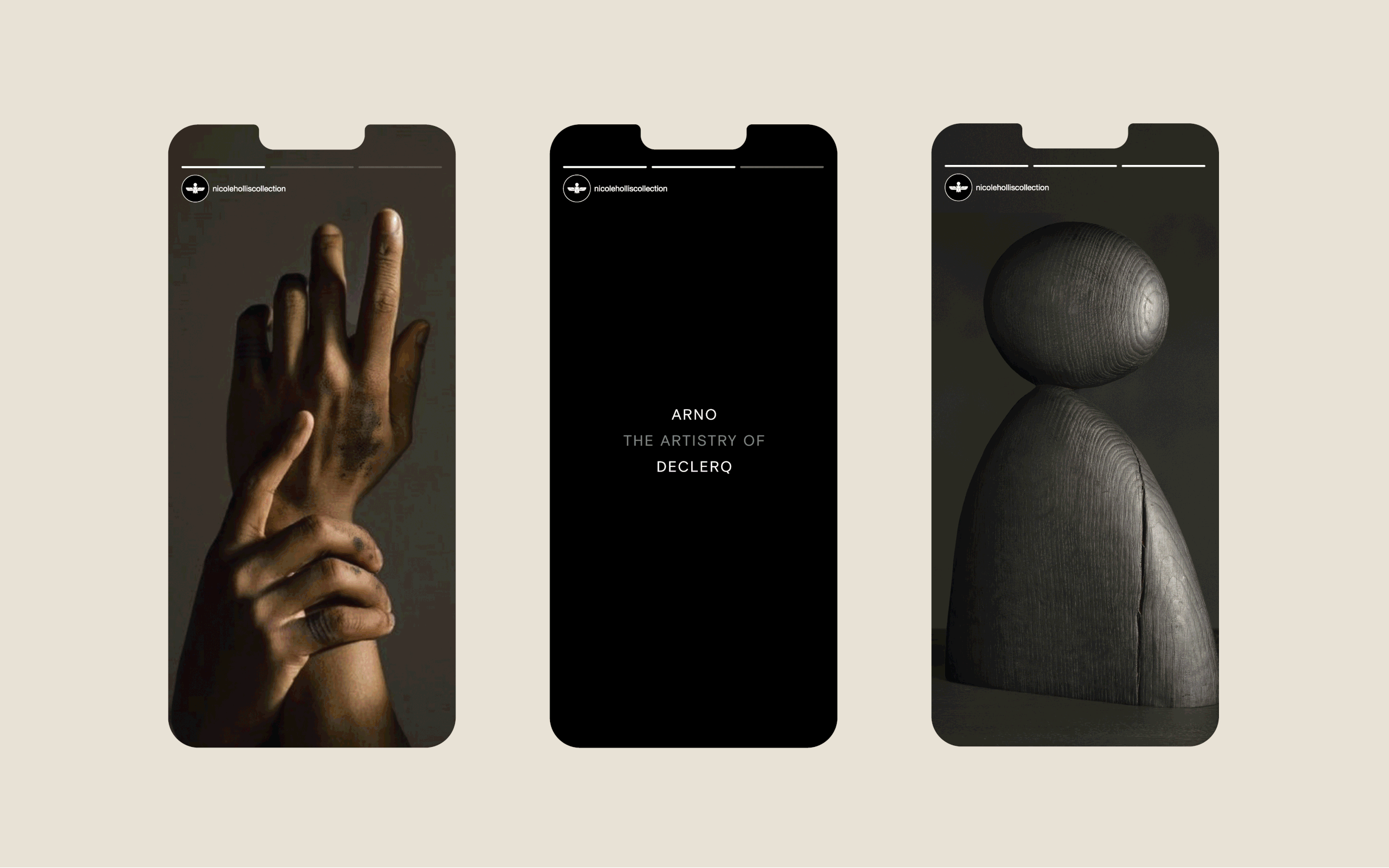 The launch campaign for the NICOLEHOLLIS Collection showcased the artistry behind each piece through a mix of imagery and video. By highlighting the hands of the artists, the raw materials, and the finished objects, the campaign brought the craft to life and celebrated the intentionality, process, and beauty inherent in every creation.